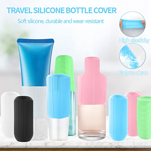 【SET DA ACCESSORI VIAGGIO 】12 manicotti in silicone, 3 rosa, 3 blu, 2 neri, 2 bianchi e 2 verdi (il manicotto in silicone verde ha una maggiore resistenza allo stiramento, adatto per piccoli contenitori).