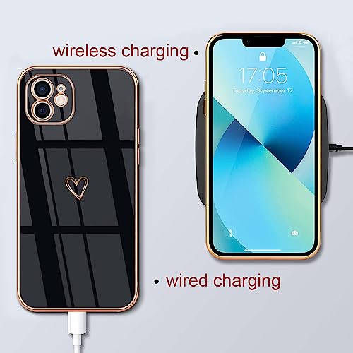 Lonrapa 2 Pezzi Cover per iPhone 12 Dorato Amore Cuore Motivo Placcatura TPU Custodia per iPhone 12 Pro Silicone Morbido Fotocamera Protettiva Antiurto Case per Ragazze Donne - Bianco e Nero