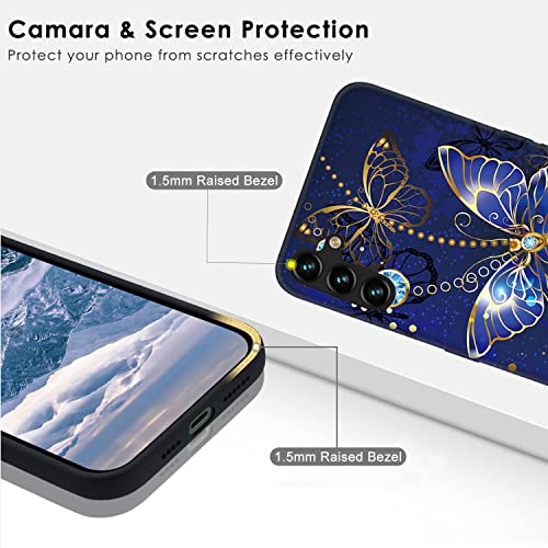 Lonrapa 2 Pezzi Cover per Samsung Galaxy A54 5G Carino Modello Disegni Protettiva Custodia TPU Silicone Ultra Slim Sottile Antiurto AntiGraffio Case Nero Cover per Galaxy A54 5G, Farfalle Blu e Oro