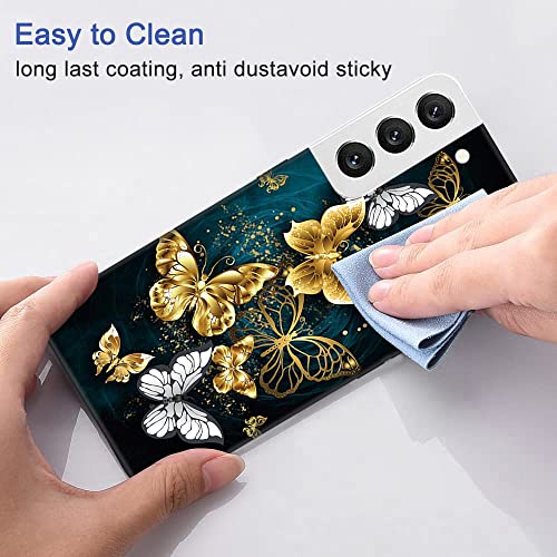 Lonrapa 2 Pezzi Cover per Samsung Galaxy S22 5G Carino Modello Disegni Protettiva Custodia TPU Silicone Ultra Slim Sottile Antiurto AntiGraffio Case Nero Cover per Galaxy S22 5G, Farfalle Blu e Oro