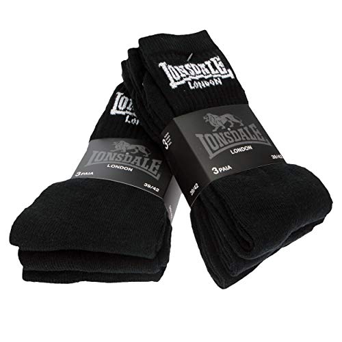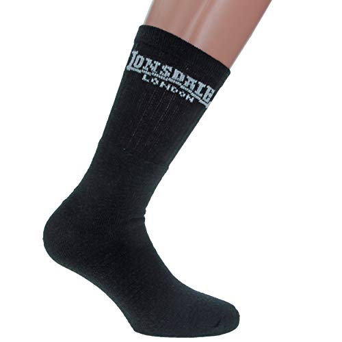 Lonsdale 6 Paia Calza Uomo Corta Tennis in Morbida Spugna Altezza Metà Polpaccio - Nero 43-46