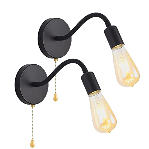 LONSTAII 2 Pezzi Interno Lampada da parete Interruttore con Cerniera Collo di Cigno 360° Flessibile e Regolabile Lampada da Comodino Applique E27 Montaggio a Muro Luce da Camera da letto,Nero