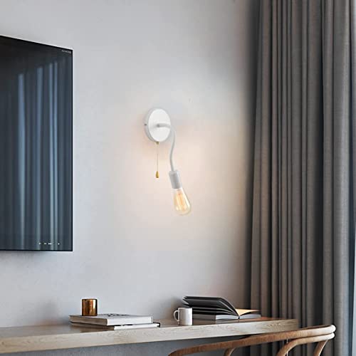 LONSTAII 2 Pezzi Interno Lampada da parete Interruttore con Cerniera Collo di Cigno 360° Flessibile e Regolabile Lampada da Comodino Applique E27 Montaggio a Muro Luce da Camera da letto,Bianca