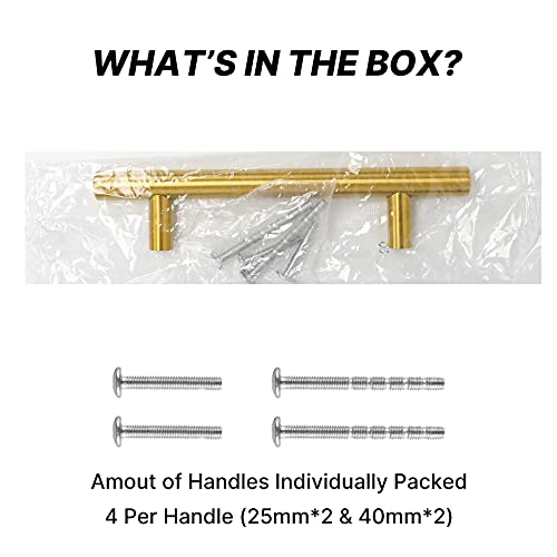 LONTAN LS201GD - Pomelli per cassetti e ante della cucina, in ottone spazzolato, con barra a T, in acciaio inox, confezione da 15, Acciaio inossidabile, Brushed Brass, hole centers: 96nn