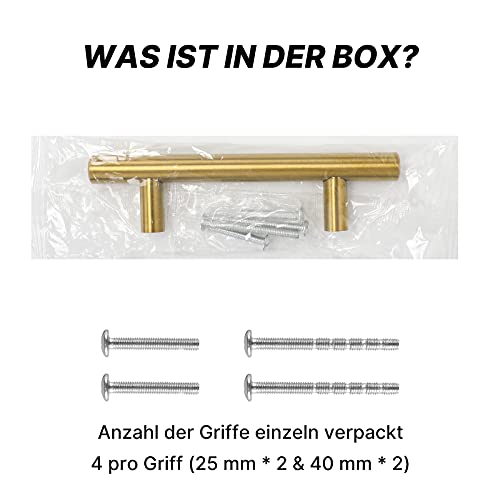 【Pacchetto incluso】 Ogni maniglia è confezionata singolarmente e confezionata per proteggere la bellissima finitura dorata. Ogni maniglia dorata viene fornita con due dimensioni di viti M4: 25 mm e 40 mm.