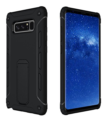 LONVIPI Cover Galaxy Note 8, Custodia Nera Rinforzata con Kickstand Antiurto Robusta Protettiva e Leggera Anti Scivolo AntiGraffio Bumper Black con Angoli Irrobustiti