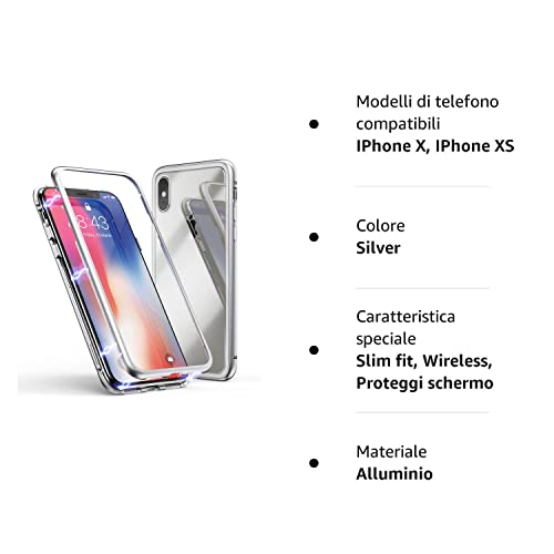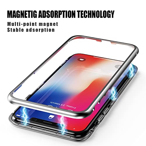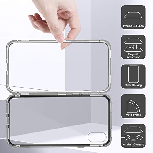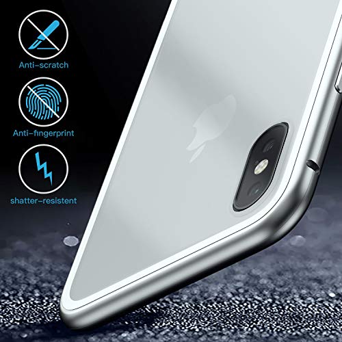 LONYAN Cover per iPhone X/iPhone XS,Custodia ad Assorbimento Magnetico Montatura in Metallo Ultra Sottile Vetro temperato con Cover Magnetica Integrata (Bianco Trasparente)