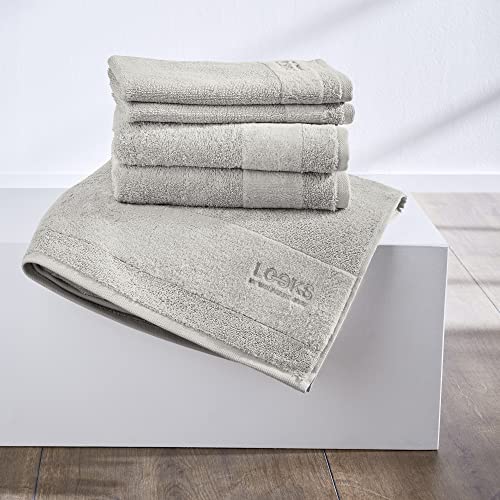 LOOKS BY WOLFGANG JOOP Telo doccia 70 x 140 cm - 100% cotone lusso teli doccia con gancio e logo ricamato, asciugamano da doccia, grigio chiaro