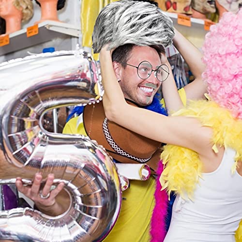 Set di costumi da vecchio: Questi costumi includono parrucche da nonno argento, occhiali, sopracciglia grigie, baffi. Vestendoti, puoi cambiare immediatamente il tuo look. Puoi anche indossare un cappello o una sciarpa sopra la parrucca per aggiungere personalità, divertimento e gioia alla festa.