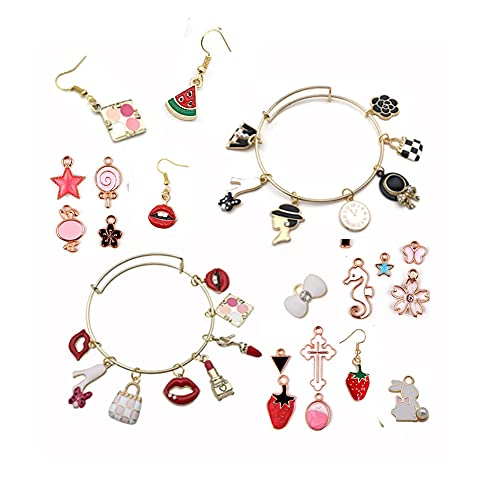 Loopunk Pendenti Ciondoli Smaltati Assortiti Ciondolo Animale Stelle Frutta Luna Ciondoli Bracciale Collana Ciondoli Misti in Metallo Liscio, per Creazione di Gioielli Fai-Da-Te