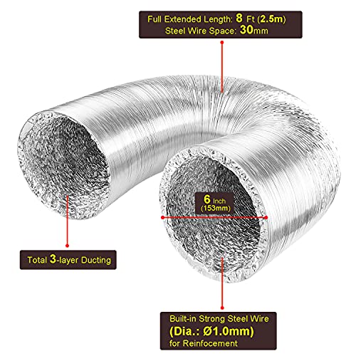LOOTICH Condotti Tubo Flessibile in Alluminio da Ø 153 mm Lunghezza 2.5 m per HVAC Aerazione con 2 Morsetti in Acciaio