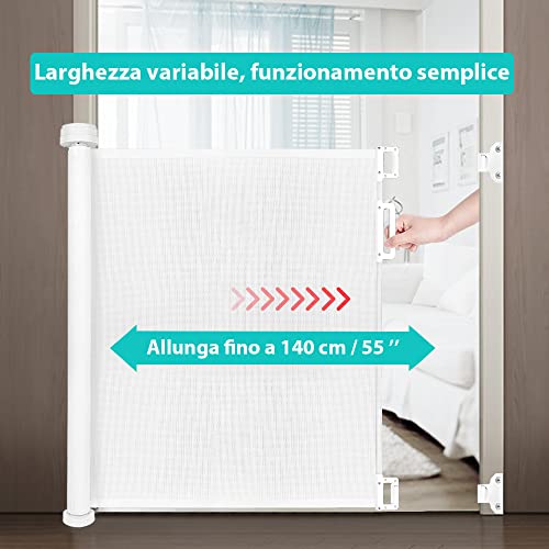 Looxii Cancelletto per Bambini a Scomparsa 0-140 cm Cancello Barriera di Sicurezza griglia espandibile per scale e corridoi interni ed esterni Bianco