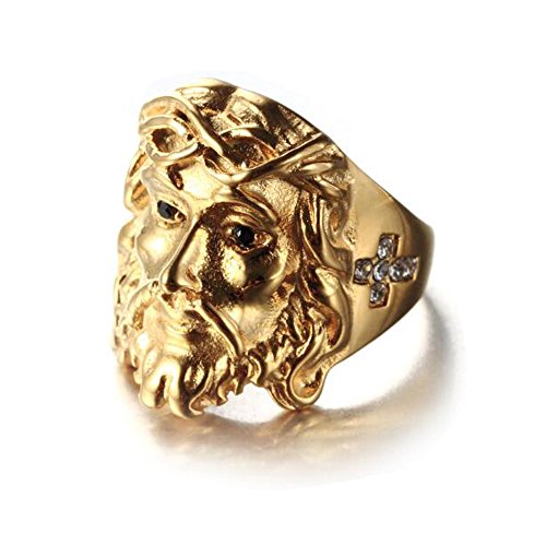 LOPEZ KENT Mens Gesù Placcato Oro Anello in Acciaio Inox con Pietra Croce CZ