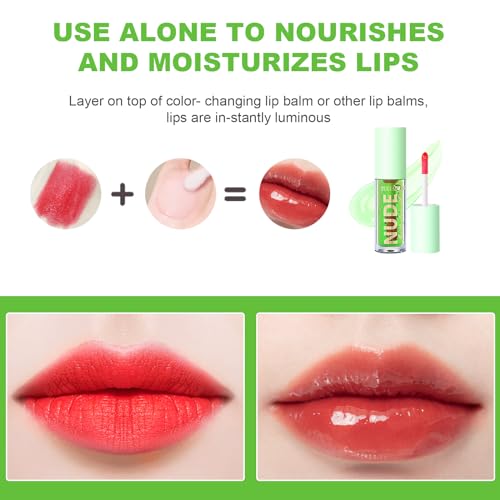 LOPHE Olio Labbra, Olio Labbra Idratante Fruit Lip Oil, Trasparente Lip Oil Gloss Lip Plumper, Effetto Rimpolpante e Idratante(04#Verde)