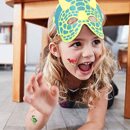 MOLTEPLICI OCCASIONI - Questo set di maschere e tatuaggi temporanei a tema dinosauri è molto adatto per feste meravigliose, feste in maschera, feste di compleanno, carnevale e Halloween. Porta più divertimento ai tuoi figli.