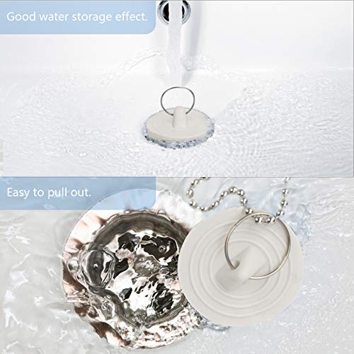 LOPOTIN 8 pezzi Tappo per Lavello in Gomma Tappo di Scarico per Vasca da Bagno, Tappo in Gomma con Diametro 4,2 cm 3,8 cm 4,6 cm 5,8 cm per Bagno Accumula Acqua Beige con Anello e Catena in Metallo.