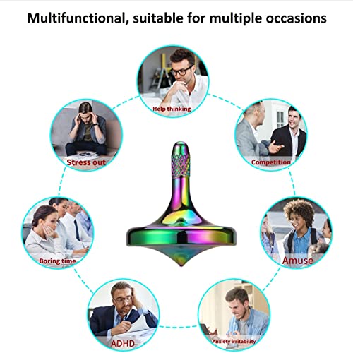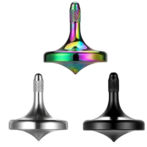 LOQATIDIS Trottola in acciaio inossidabile,Giocattolo di decompressione EDC ben fatto, perfettamente bilanciato e scorrevole, Aiuta a ridurre lo stress, l'ansia (3PCS Nero+Argento+Iridescente)