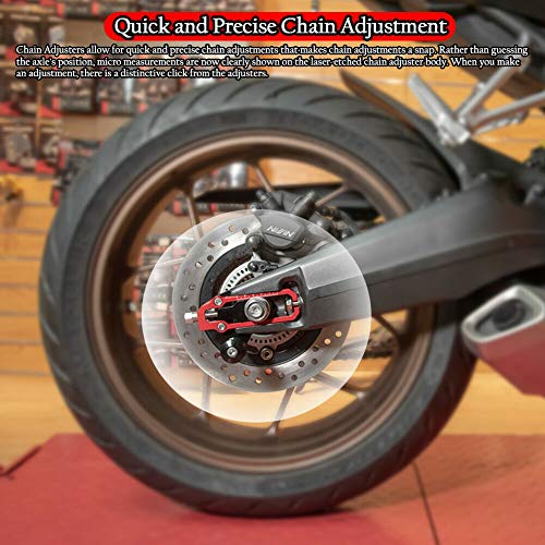 【Funzione】 ✔ Protegge l'albero dell'asse posteriore e il dado da danni. ✔ Aggiunge stabilità alle alte velocità, riduce l'usura della catena e del pignone. ✔ Queste unità offrono ampie gamme di regolazioni, più forti di altri blocchi di fabbrica.