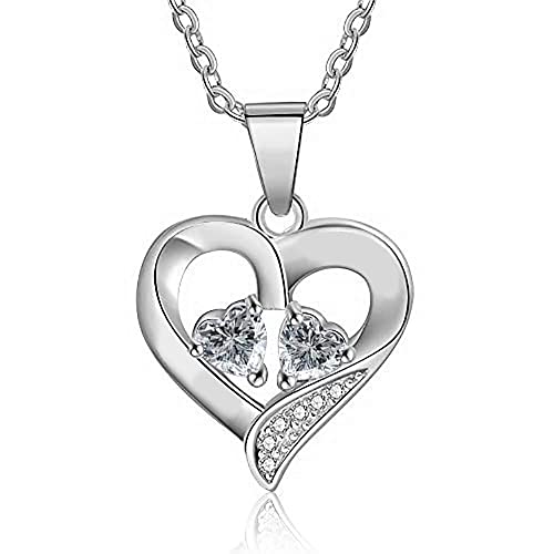 Lorajewel Classic Donna Collana Cuore Ciondolo in Sterling Argento 925 con 2 Pezzi Cuore Zirkonia Birthstone Regalo Donna Compleanno San Valentino Festa della Mamma Anniversario