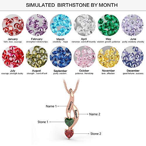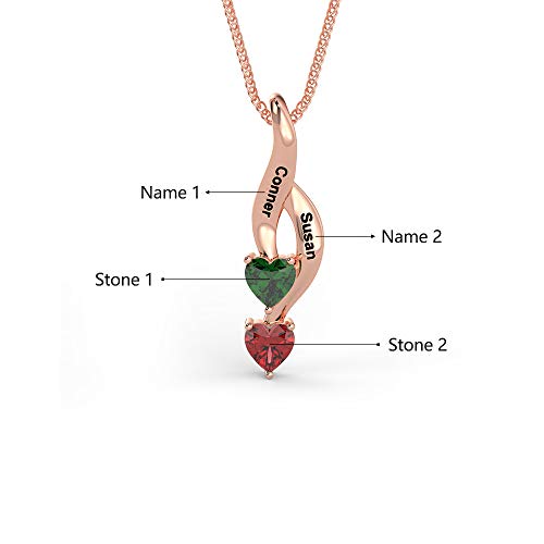 Lorajewel Collana con 2 Nomi ncisione Birthstones Donna 925 Argento Sterling Regali per la Festa della Mamma Personalizzato Oro Rosa
