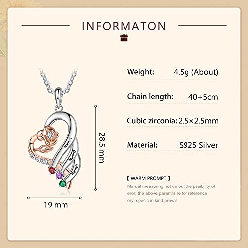 Lorajewel 3 Nomi Cuore Collana da Donna Oro Rosa Fiore 925 Sterling Argento con Pietre Zircone Regalo Originale per Lei Mamma Moglie Fidanzata Compleanno Anniversario con Squisita Scatola