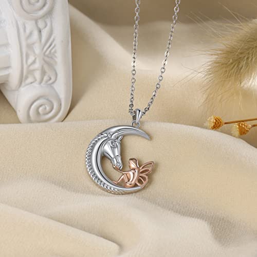 Lorajewel Donna Collana A Forma di Luna Angelo e Cavallo Ciondolo Oro Rosa Catena Argento 925 Regalo per lei Donna Compleanno para Ragazza Figlia