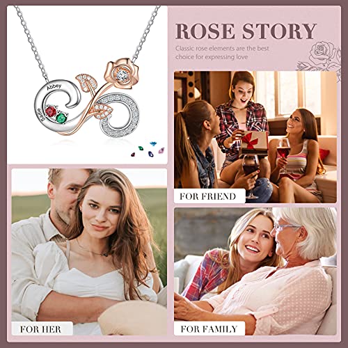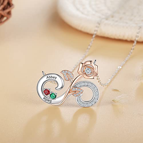 Lorajewel Infinito Collana 2 Nomi Personalizzata Oro Rosa Gioielli Donna Incisione Sterling Argento 925 Catena Pietra Portafortuna Regalos per Moglie/Nonna/Sorella/Fidanzata