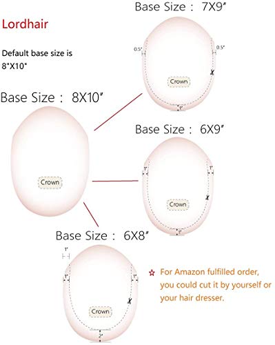 Misura standard della calotta di questa parrucca è 8''x10'', ma se ritenuta troppo grande puo' essere modificata secondo la taglia che si desidera.