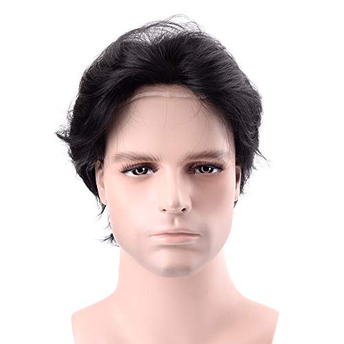 Lordhair 100% Sostituzione dei Capelli Francese del Merletto dei Capelli Umani del Sistema Nero di Getto 1# Degli Uomini di Colore dei Capelli Parrucchino Non Chirurgica di Sostituzione dei Capelli