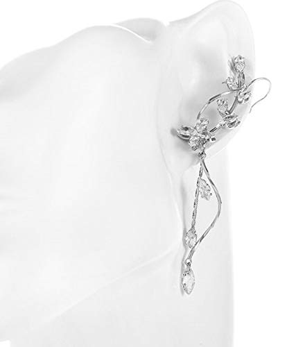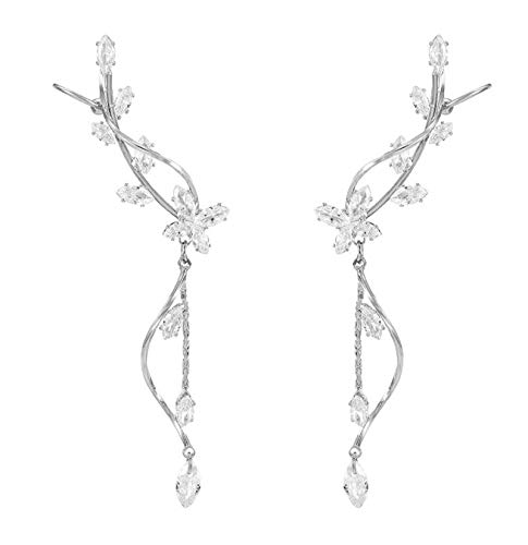 LORELYS - Orecchini pendenti a forma di ali di farfalla, con cristalli in ossido di zirconio trasparente, con lustrini placcati in oro bianco