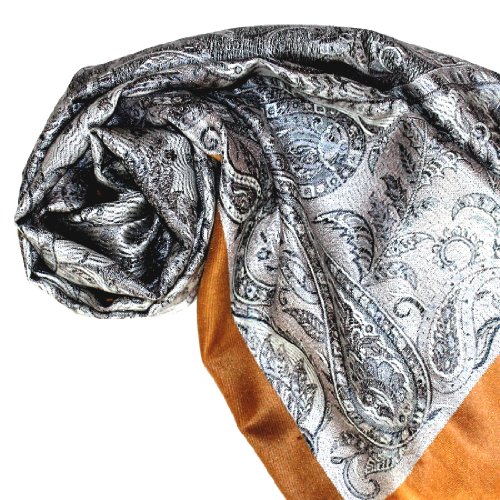 Lorenzo Cana Luxury Pashmina Sciarpa da donna in tessuto jacquard 100% seta, 55 x 180 cm, motivo cachemire, sciarpa di seta pashmina colori armoniosi
