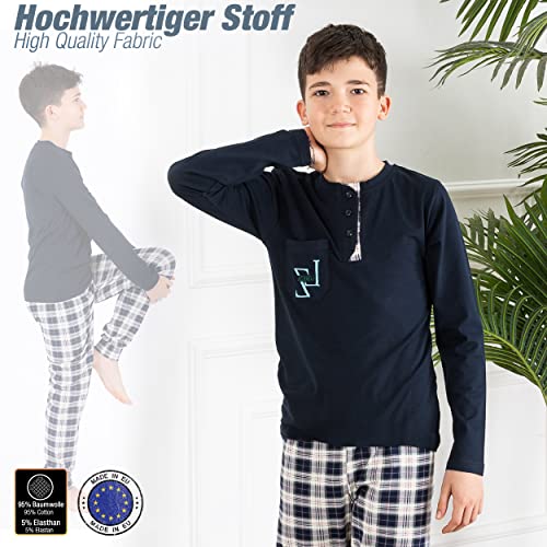 LOREZA ® Ragazzi Set Pigiama Due Pezzi in Cotone (152-158 (12-13 Anni), Blu)