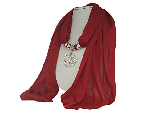 La Loria Sciarpa dei monili delle donne Rose fazzoletto da collo di moda con Pendente, sciarpa con ciondolo gioielli, Rosso