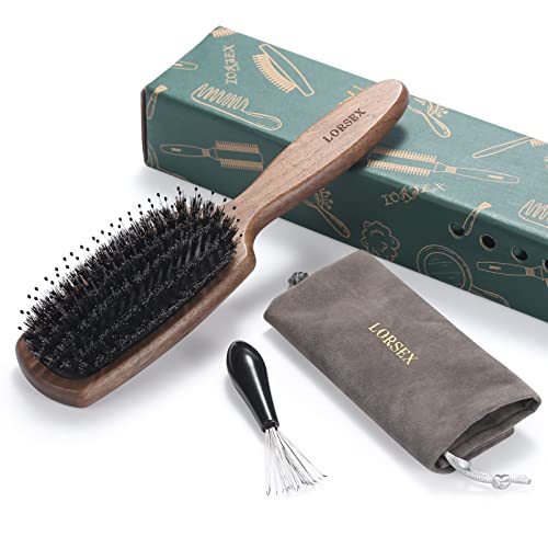 LORSEX Set di spazzole per capelli con cuscino d'aria e setole di cinghiale e nodo levigante per massaggi, spazzola per capelli in legno, borsa da viaggio e detergente per capelli inclusi (noce)