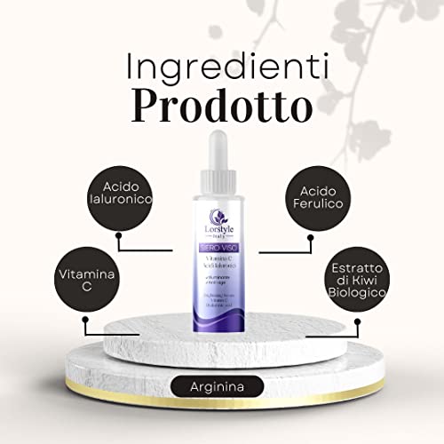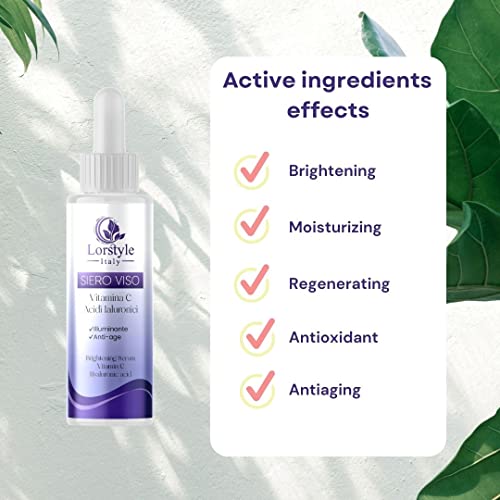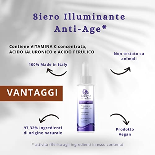 Lorstyle Siero alla Vitamina C e Acido Ialuronico e Acido Ferulico - attivi con effetto Illuminante Idratante Anti-age Antimacchia per Viso e Collo per Donna / Uomo