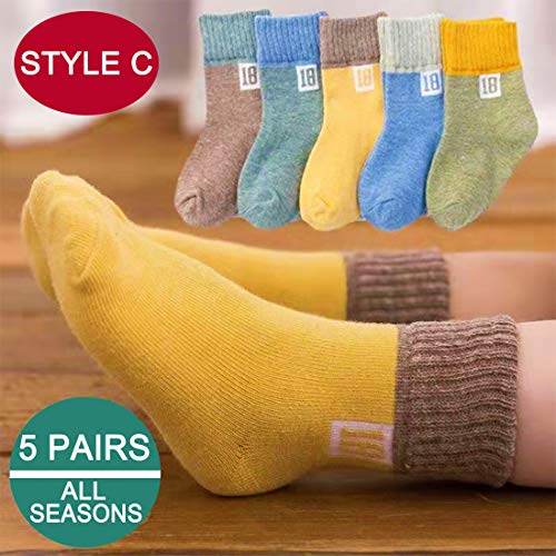 LORYLOLY 5 Paia di Calzini per Bambini 1-12 Anni, Cotone Naturale Caldo e Confortevole, Calzini Quotidiani per Ragazza ragazzo bambino, Unisex per Tutte le stagioni Natale Scuola