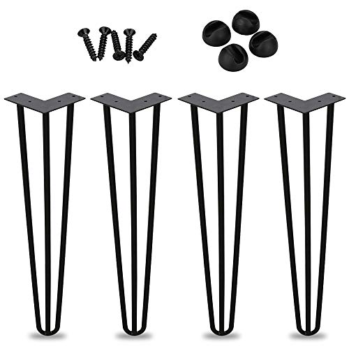 Lospitch Hairpin Legs - Gambe da tavolo in metallo nero con forcine da tavolo da 12 mm, gambe in acciaio, 3 aste, 25 cm, 4 pezzi