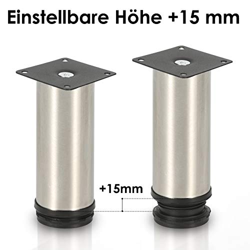 Lospitch Set di 4 piedini per mobili in alluminio, altezza 200 mm, portata fino a 250 kg, piedini cilindrici, per i mobili della cucina, del tavolo, del divano, regolabili in altezza fino a 15 mm