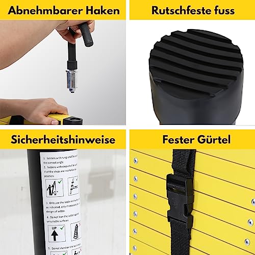 Ampia gamma di utilizzi: la scala allungabile è adatta per lavori di costruzione in interni ed esterni, pulizia delle finestre, manutenzione della casa, giardinaggio e applicazioni edili, ma può essere utilizzata anche per lavori di pittura, manutenzione della casa e potatura degli alberi.