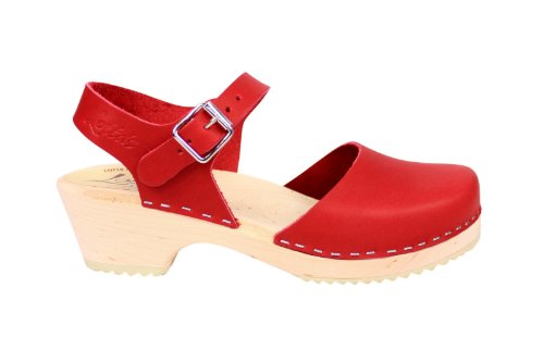 Lotta From Stockholm Low Wood - Zoccoli svedesi in Pelle con Tacco Basso - Rosso - Numero EUR 42