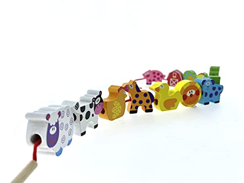 Giocattolo in legno naturale: un giocattolo con lacci è stato progettato per aiutare i bambini a riconoscere forme e animali. Realizzato in legno naturale di alta qualità. Offrono un gioco atossico e sicuro con perline con bordi lisci e superfici per bambini.