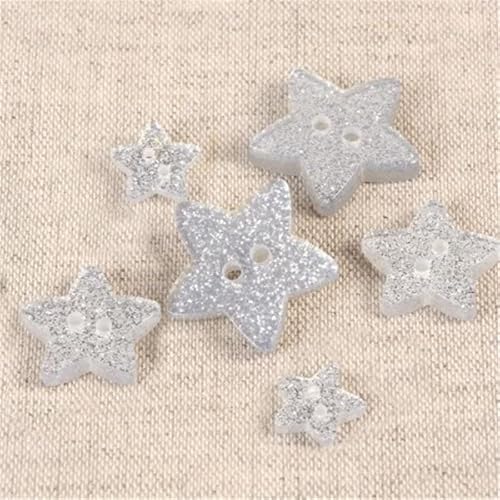 M & C - Lotto di 6 bottoni a forma di stella glitterata, 18 mm, colore: Argento