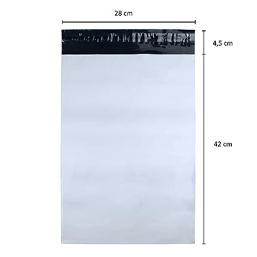 Lotto di buste in plastica bianca opaca, buste da spedizione (100, 28 x 42 cm)