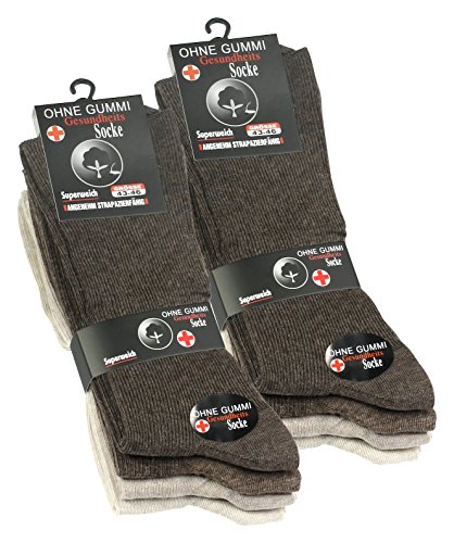 Lotto di 8 paia di calze senza elastico - Cotone - Punta rinforzata - per piede diabetico