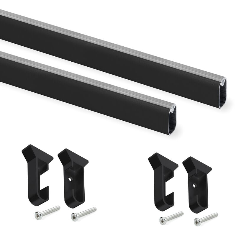 Il kit include tutto il necessario per il montaggio di due tubi per armadio 30x15 mm Silk: il tubo, i reggitubi laterali, e le viti M6 per il montaggio. Il tubo � dotato di una guarnizione in gomma per evitare il rumore delle grucce. Il tubo appendiabiti � disponibile in due misure: 750 mm e 1150 mm. Nei kit da 1150 mm se includono inoltre 2 reggitubi centrali per fornire maggiore rigidit� al tutto. Permettono due possibilit� di montaggio: nei fianchi del mobile con vite filettata legno diametro 3.5 o montaggio superiore con vite M6. Si includono viti M6x40 mm per il montaggio superiore. In conformit� alla norma ISO: 7170:205, la barra ed i reggitubi possono sostenere un peso massimo di 40 kg/metro uniformemente divisi. Lunghezza dei tubi: 750 mm. Il kit include tutto il necessario per il montaggio di due tubi per armadio 30x15 mm Silk. Due possibilit� di montaggio dei reggitubi laterali: nei fianchi del modulo con vite filettata legno �3.5 o montaggio superiore con vite M6. Si