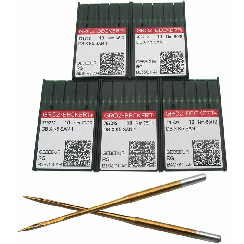 Questo elenco include: 5 scatole da 10 aghi di varie dimensioni in totale 50 aghi Groz-Beckert DBXK5 SAN1 per macchina da ricamo industriale commerciale. Taglia 60/8, taglia 65/9, taglia 70/10, taglia 75/11, taglia 80/12. . Sistema di aghi: DBXK5 SAN1. . Groz-Beckert DBXK5 SAN1, con il suo design speciale e il rivestimento in nitruro di titanio, offre grande stabilità e massima resistenza all'usura. Gli aghi DBXK5 SAN1 non sono adatti solo per macchine da ricamo. È appositamente adattato (SAN1). Inoltre, il tipo GEBEDUR Titanium aumenta la durata dell'ago fino a 3 volte rispetto alle tradizionali lancette cromate.