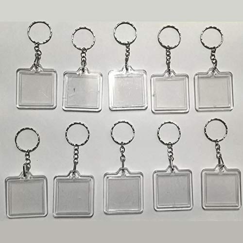 Lotto di 10 portachiavi con cornice rigida in plastica per foto, 4 x 4 cm