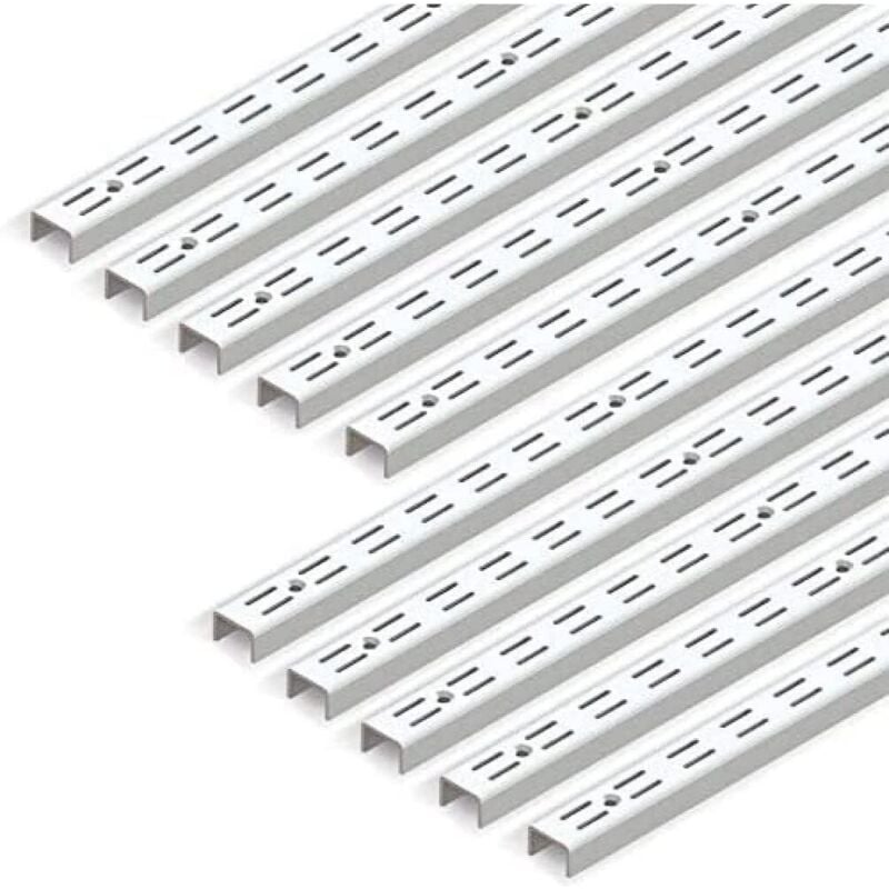 Profili a cremagliera per realizzare mensole su misura da fissare alla parete. Sono ideali per attrezzare l'interno di armadi, guardaroba, locali lavanderia o dispense. Sono progettati per essere utilizzati in combinazione con i reggipiani a scanalatura doppia con passo 32 mm per l'installazione di mensole in legno . Sistema di profili per realizzare composizioni di scaffalature a parete sia per ripiani in legno che in vetro. Da usare con la gamma di reggipiani Jagmet per cremagliera doppia passo 32mm. Prodotto in acciaio con finitura verniciata bianca. 10 profili