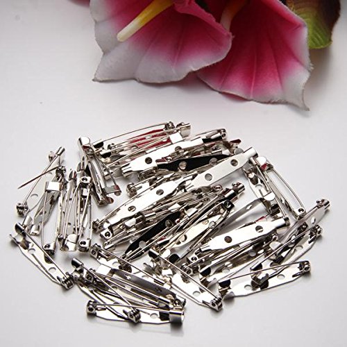 LOTTO 50pz BASE SPILLA IN METALLO COLORE ARGENTO 31x5mm