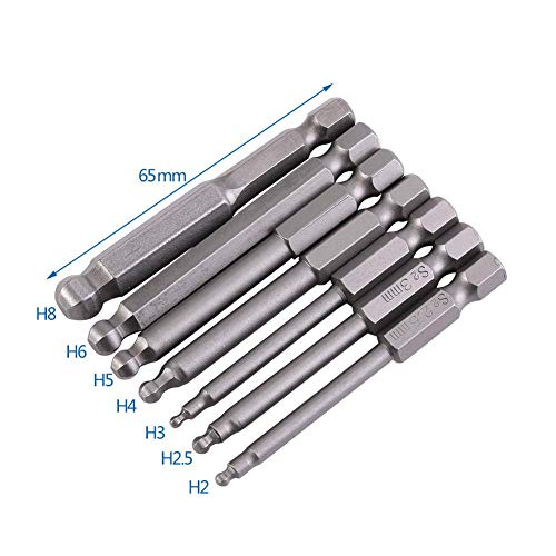 Lotto testa a sfera, 7 pezzi 1/4 '' codolo esagonale 65mm punte per cacciavite a sfera magnetiche